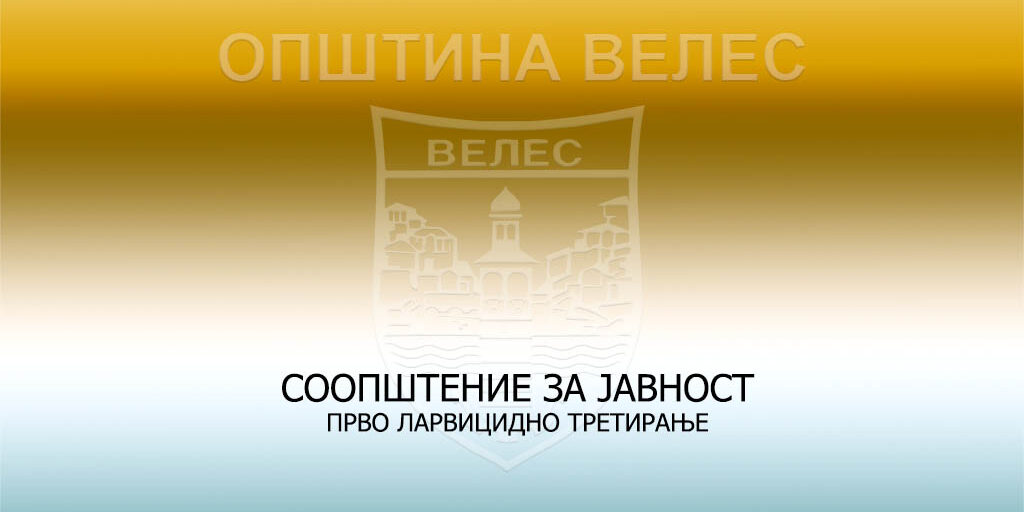 Општина Велес ја известува јавноста дека на 23 март 2024 година, во зависност од временските услови, ќе започне со спроведување на теренско – третирање од земја, против ларви од комарци.
