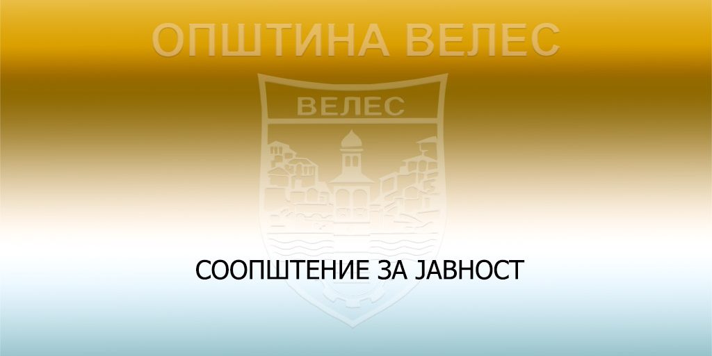 Општина Велес ја известува јавноста дека започнувајќи од утре, среда, 18 јануари 2023 година, во наредниот четиримесечен период ќе се одвиваат градежни работи за адаптација и преуредување на простор, дел од објект во сопственост на Општина Велес на улица „8 Септември” во централното градско подрачје (зградата на поранешното кино „11 Октомври”).