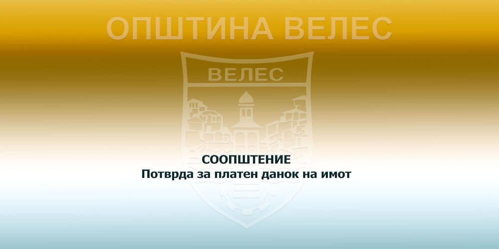 Се известуваат граѓаните на Општина Велес кои сакаат да аплицираат за субвенции, а немаат потврда за платен данок, да се јават во Граѓански сервис центар на  Општина Велес каде можат да поднесат  Барање за издавање на потврда за платен данок на имот. Доколку граѓаните немаат добиено решение за данок на имот со истото барање можат да наведат да им се издаде решение и по плаќањето да ја добијат потврдата за платен данок на имот.