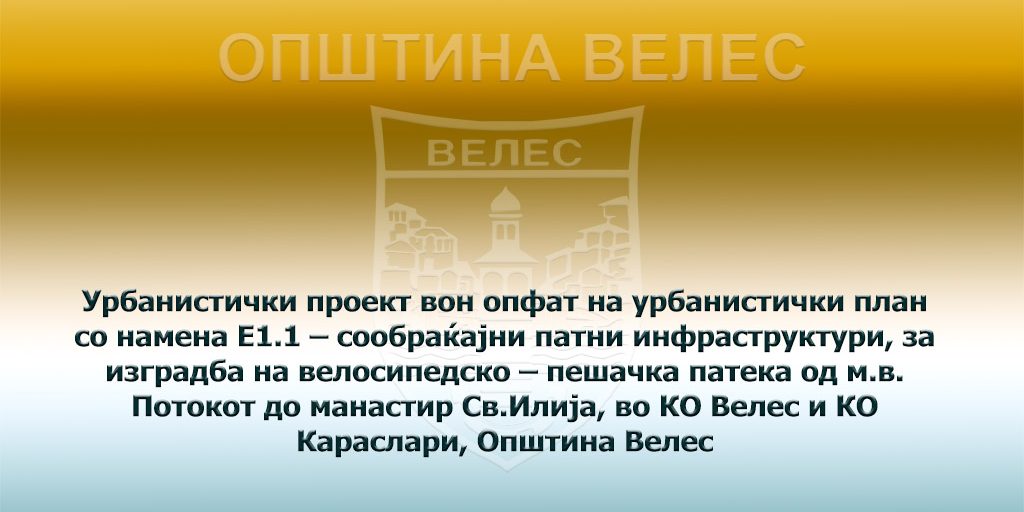 Јун242025Соопштение Урбанистички проект Споделете: Share on FacebookShare on Facebook Share on XShare on X Pin itShare on Pinterest Share on LinkedInShare on LinkedIn