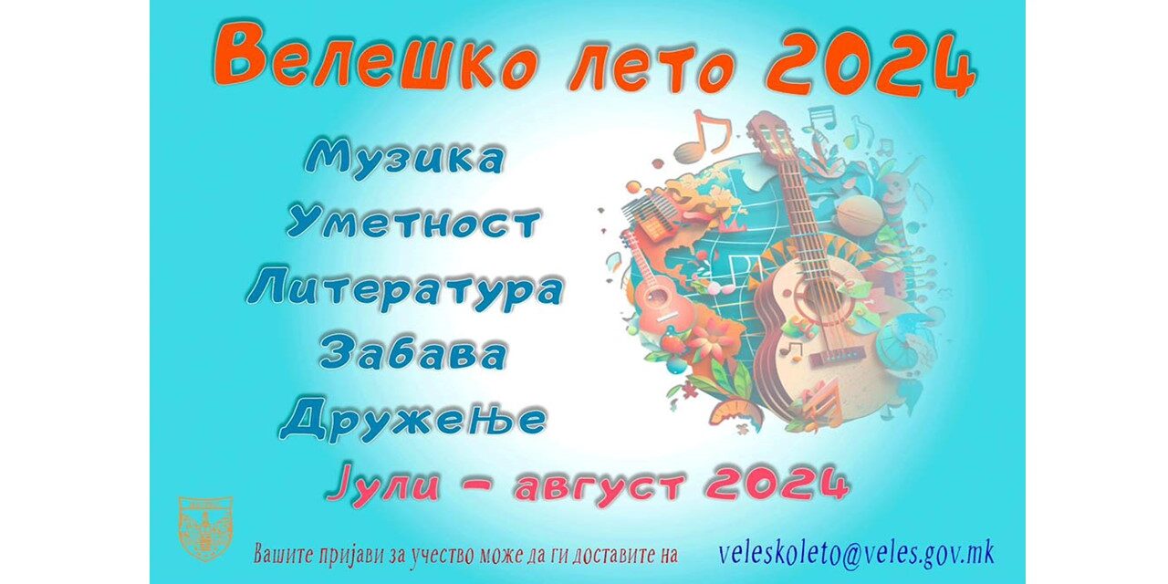 Сите ваши креативни идеи за учество во културните настани во рамки на Велешко лето се добредојдени и можете да ги доставите на veleskoleto@veles.gov.mk